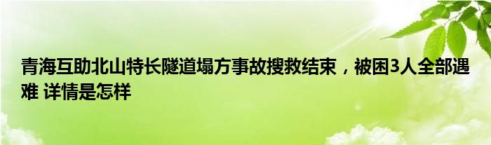 【青海互助北山特长隧道塌方事故搜救结束,被困3人全部遇难】大家可以一起来了解一下这是什么情况!