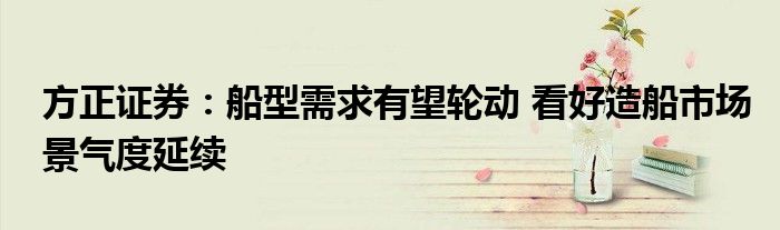 方正证券:船型需求有望轮动 看好造船市场景气度延续