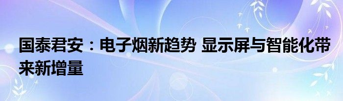 国泰君安:电子烟新趋势 显示屏与智能化带来新增量