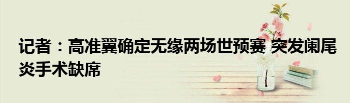 记者:高准翼确定无缘两场世预赛 突发阑尾炎手术缺席