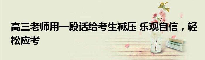高三老师用一段话给考生减压 乐观自信,轻松应考