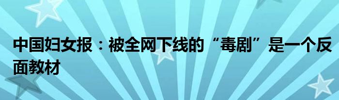 中国妇女报:被全网下线的“毒剧”是一个反面教材