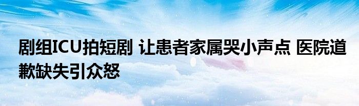 剧组ICU拍短剧 让患者家属哭小声点 医院道歉缺失引众怒