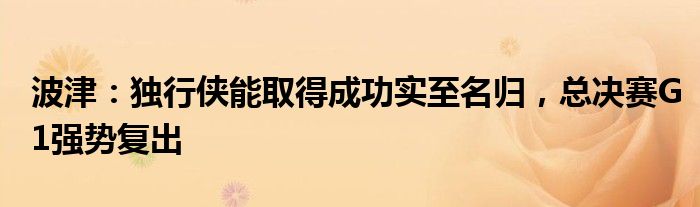 波津:独行侠能取得成功实至名归,总决赛G1强势复出