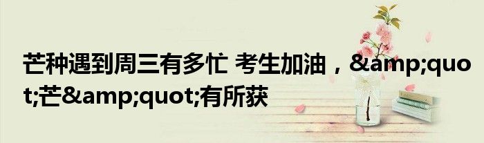 芒种遇到周三有多忙 考生加油,"芒"有所获