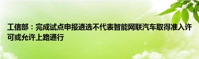 工信部:完成试点申报遴选不代表智能网联汽车取得准入许可或允许上路通行