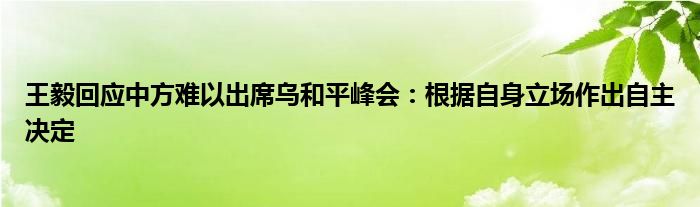 王毅回应中方难以出席乌和平峰会:根据自身立场作出自主决定