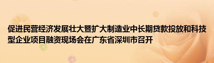 促进民营经济发展壮大暨扩大制造业中长期贷款投放和科技型企业项目融资现场会在广东省深圳市召开