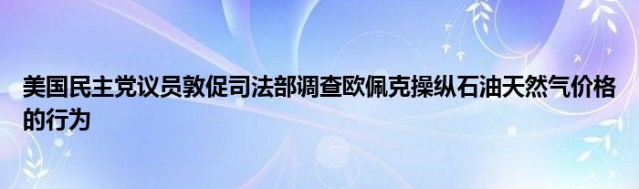 美国民主党议员敦促司法部调查欧佩克操纵石油天然气价格的行为