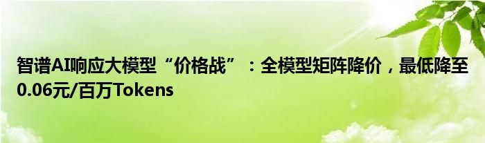 智谱AI响应大模型“价格战”:全模型矩阵降价,最低降至0.06元/百万Tokens