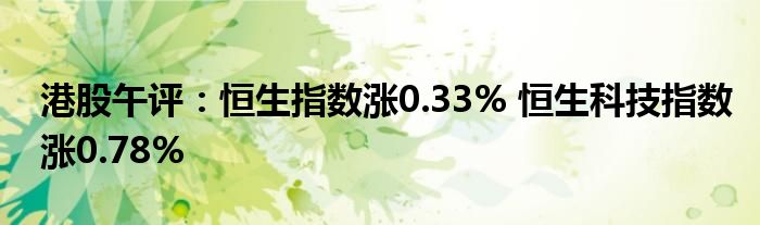 港股午评:恒生指数涨0.33% 恒生科技指数涨0.78%