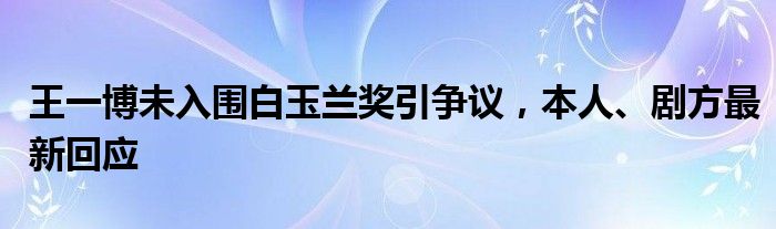 王一博未入围白玉兰奖引争议,本人、剧方最新回应