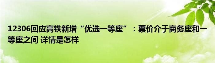 【12306回应高铁新增“优选一等座”:票价介于商务座和一等座之间】大家可以一起来了解一下这是什么情况!