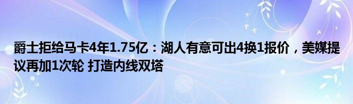 爵士拒给马卡4年1.75亿:湖人有意可出4换1报价,美媒提议再加1次轮 打造内线双塔
