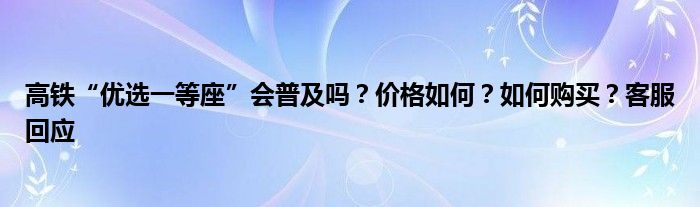 高铁“优选一等座”会普及吗?价格如何?如何购买?客服回应