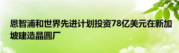 恩智浦和世界先进计划投资78亿美元在新加坡建造晶圆厂