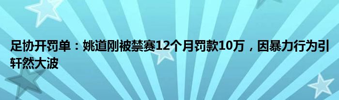 足协开罚单:姚道刚被禁赛12个月罚款10万,因暴力行为引轩然大波