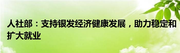 人社部:支持银发经济健康发展,助力稳定和扩大就业