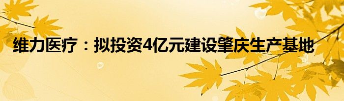 维力医疗:拟投资4亿元建设肇庆生产基地