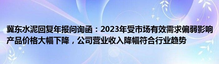 冀东水泥回复年报问询函:2023年受市场有效需求偏弱影响产品价格大幅下降,公司营业收入降幅符合行业趋势