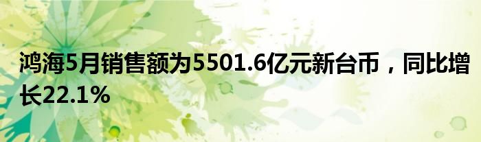 鸿海5月销售额为5501.6亿元新台币,同比增长22.1%。