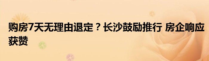 购房7天无理由退定?长沙鼓励推行 房企响应获赞