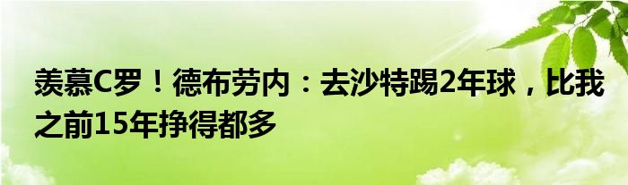 羡慕C罗!德布劳内:去沙特踢2年球,比我之前15年挣得都多