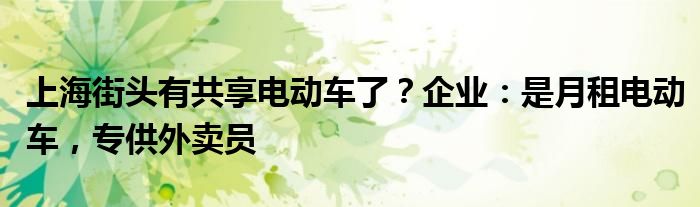 上海街头有共享电动车了?企业:是月租电动车,专供外卖员