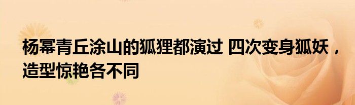 杨幂以其独特的桃花眼著称,常被比作小狐狸,这一特点似乎冥冥中与她演艺生涯中的“狐”角色结下了不解之缘。她在多部作品中四度化身狐妖或狐仙,其中最新的一次是在热门动画改编作品《狐妖小红娘》中,饰演的涂山红红被赋予了“天选狐狸”的美誉。杨幂青丘涂山的狐狸都演过!