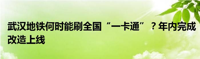 武汉地铁何时能刷全国“一卡通”?年内完成改造上线