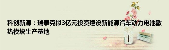 科创新源:瑞泰克拟3亿元投资建设新能源汽车动力电池散热模块生产基地