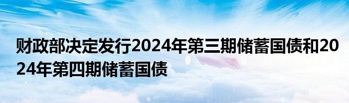 财政部决定发行2024年第三期储蓄国债和2024年第四期储蓄国债