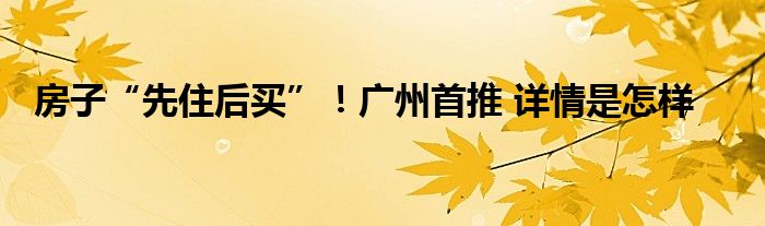 【房子“先住后买”!广州首推】大家可以一起来了解一下这是什么情况!