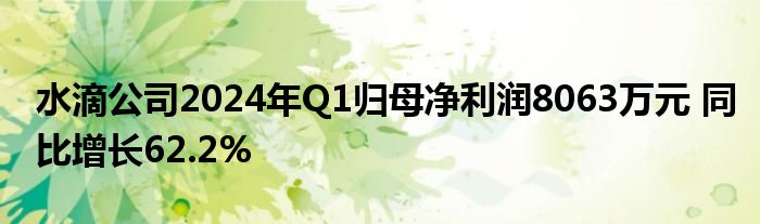 水滴公司2024年Q1归母净利润8063万元 同比增长62.2%