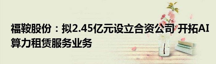 福鞍股份:拟2.45亿元设立合资公司 开拓AI算力租赁服务业务