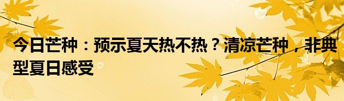 今日芒种:预示夏天热不热?清凉芒种,非典型夏日感受
