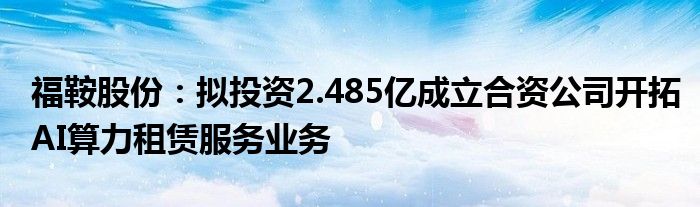 福鞍股份:拟投资2.485亿成立合资公司开拓AI算力租赁服务业务