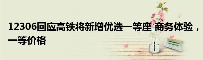 12306回应高铁将新增优选一等座 商务体验,一等价格