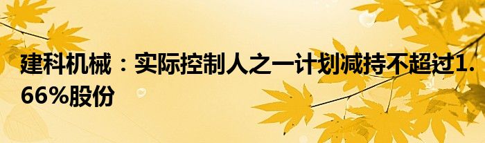 建科机械:实际控制人之一计划减持不超过1.66%股份