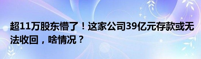 超11万股东懵了!这家公司39亿元存款或无法收回,啥情况?