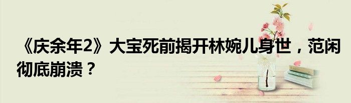 《庆余年2》大宝死前揭开林婉儿身世,范闲彻底崩溃?