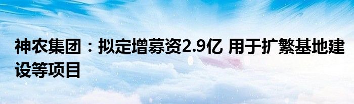 神农集团:拟定增募资2.9亿 用于扩繁基地建设等项目