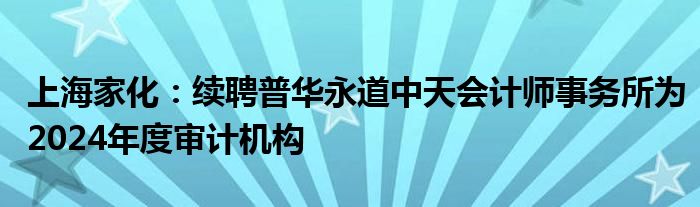 上海家化:续聘普华永道中天会计师事务所为2024年度审计机构