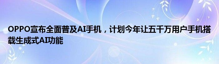 OPPO宣布全面普及AI手机,计划今年让五千万用户手机搭载生成式AI功能