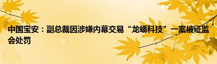 中国宝安:副总裁因涉嫌内幕交易“龙蟠科技”一案被证监会处罚