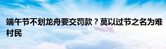 端午节不划龙舟要交罚款?莫以过节之名为难村民