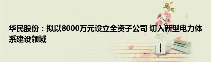 华民股份:拟以8000万元设立全资子公司 切入新型电力体系建设领域