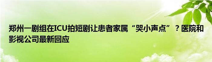 郑州一剧组在ICU拍短剧让患者家属“哭小声点”?医院和影视公司最新回应