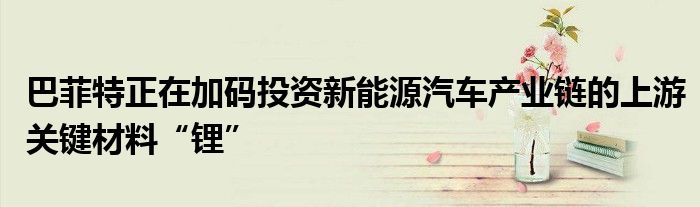 巴菲特正在加码投资新能源汽车产业链的上游关键材料“锂”