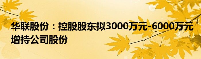 华联股份:控股股东拟3000万元-6000万元增持公司股份